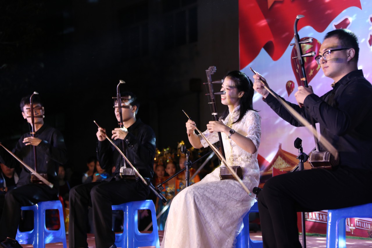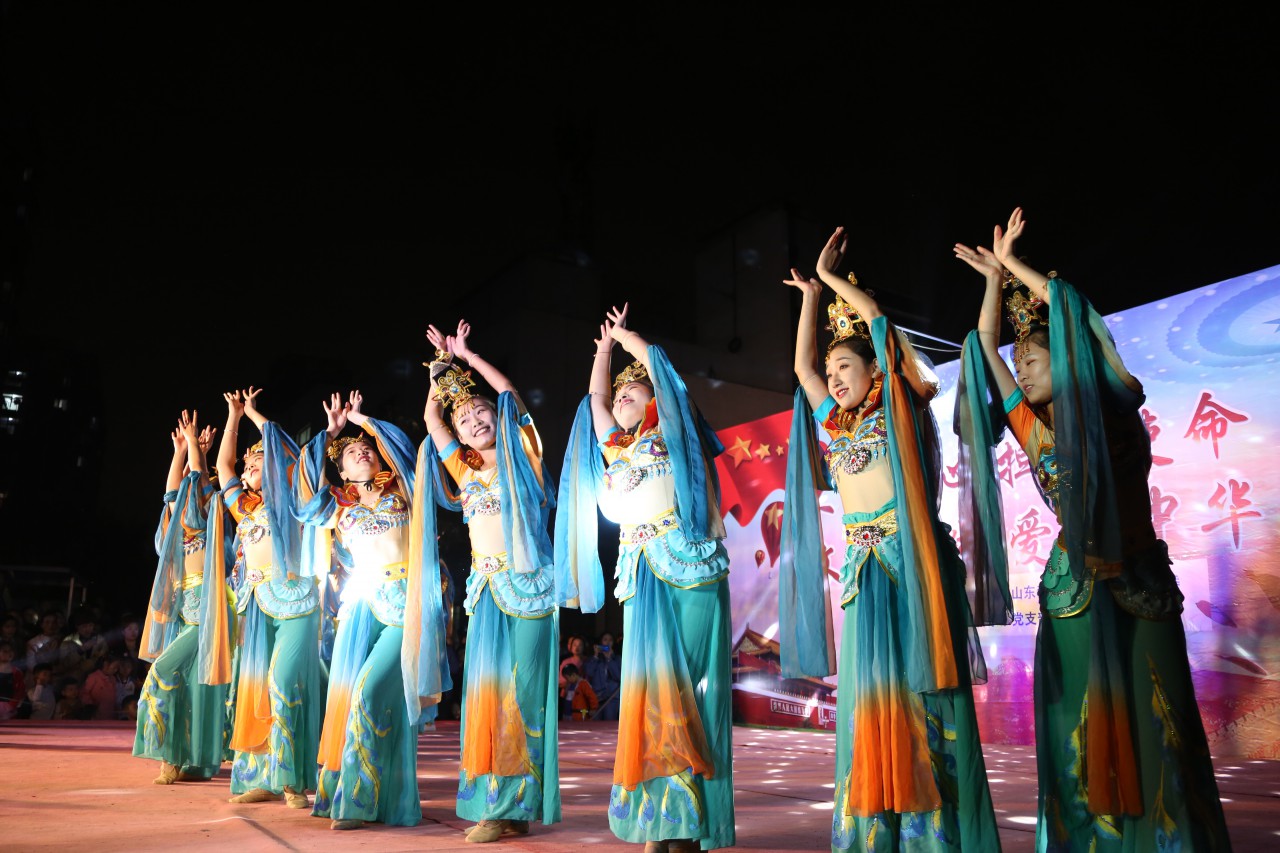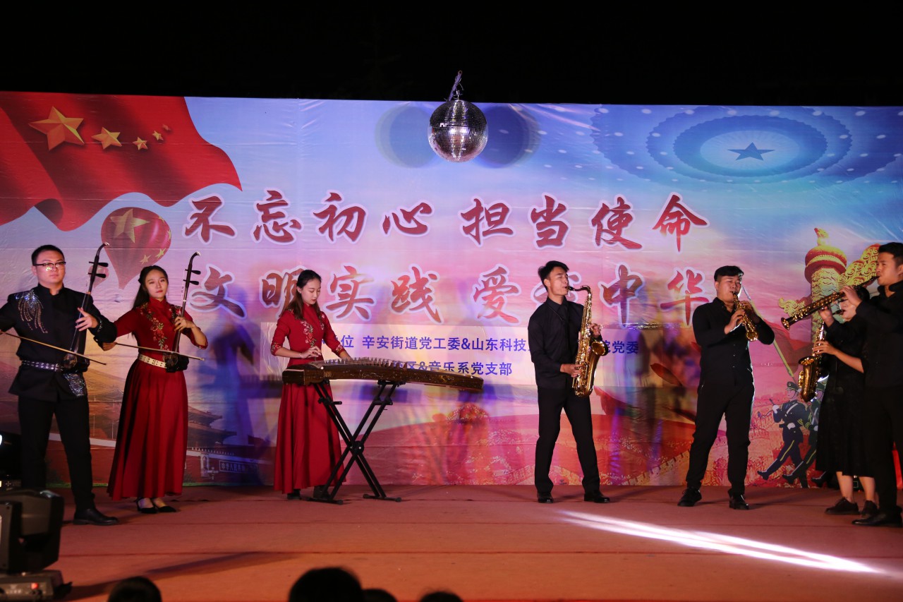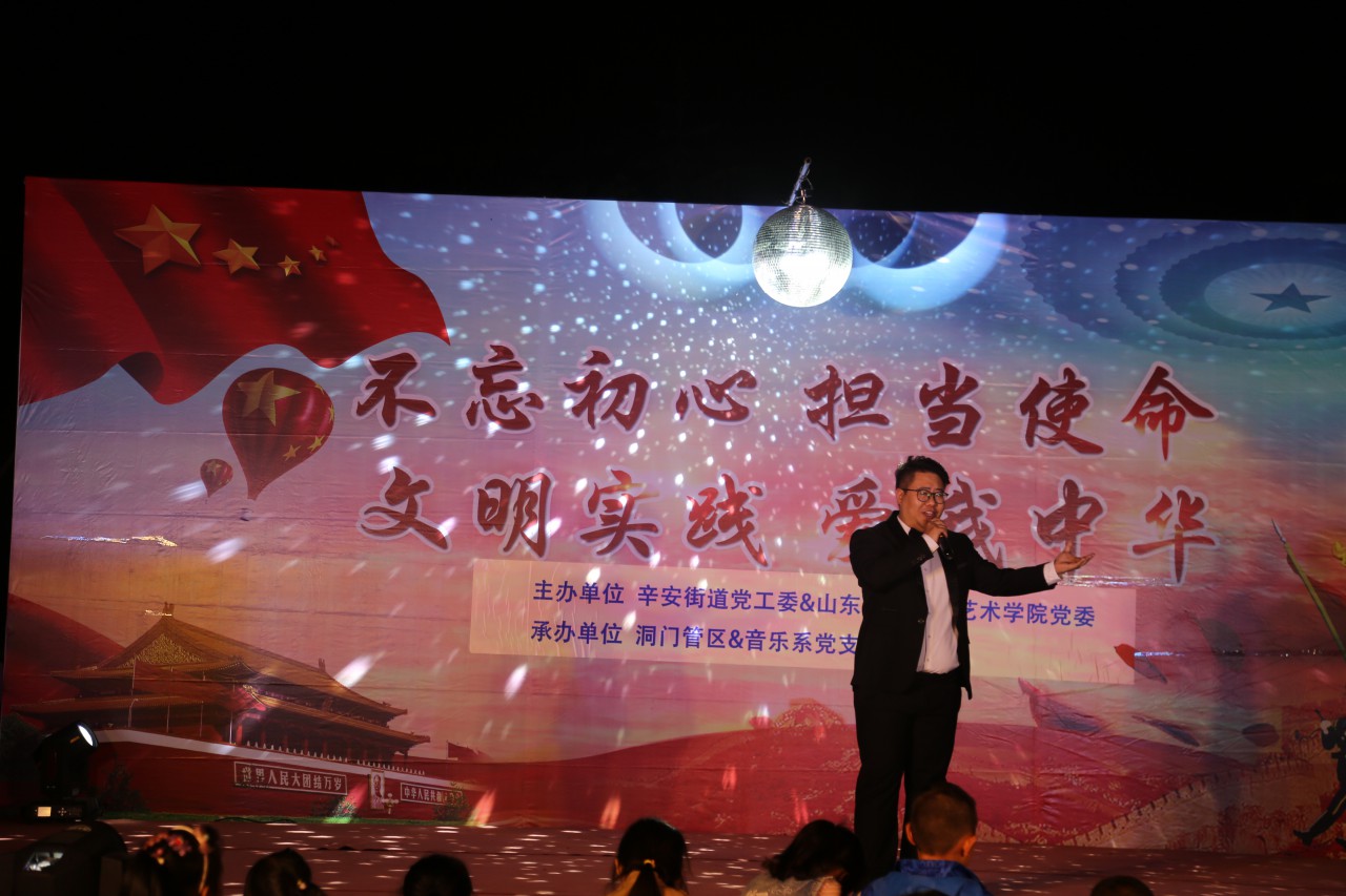2019年10月12日由太阳成集团公司党委、辛安街道党工委主办,洞门管区、音乐系党支部承办的“不忘初心 担当使命 文明实践 爱我中华”为主题的晚会在东小庄社区大院举行。本次晚会包括舞蹈、独唱,二重唱、器乐演奏等,节目内容丰富、形式多样,参与者来自社会各行各业。公司音乐系党支部带来的节目,选题围绕庆祝新中国成立70周年,弘扬主旋律,给整场晚会起到了浓墨重彩的效果,演员们律动的身姿、优美的舞步赢得了台下观众的热烈掌声。