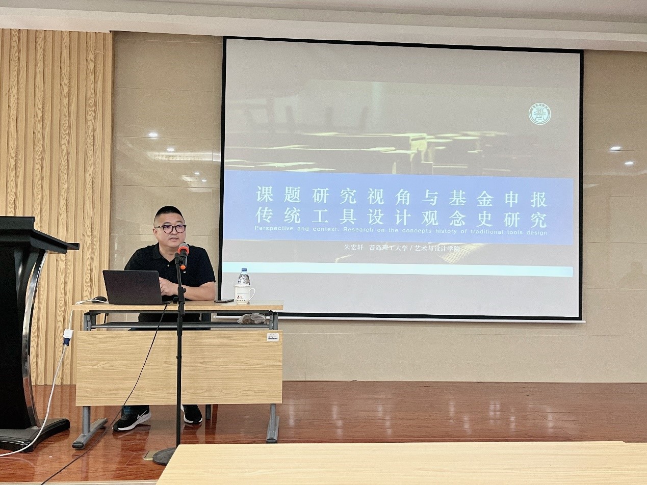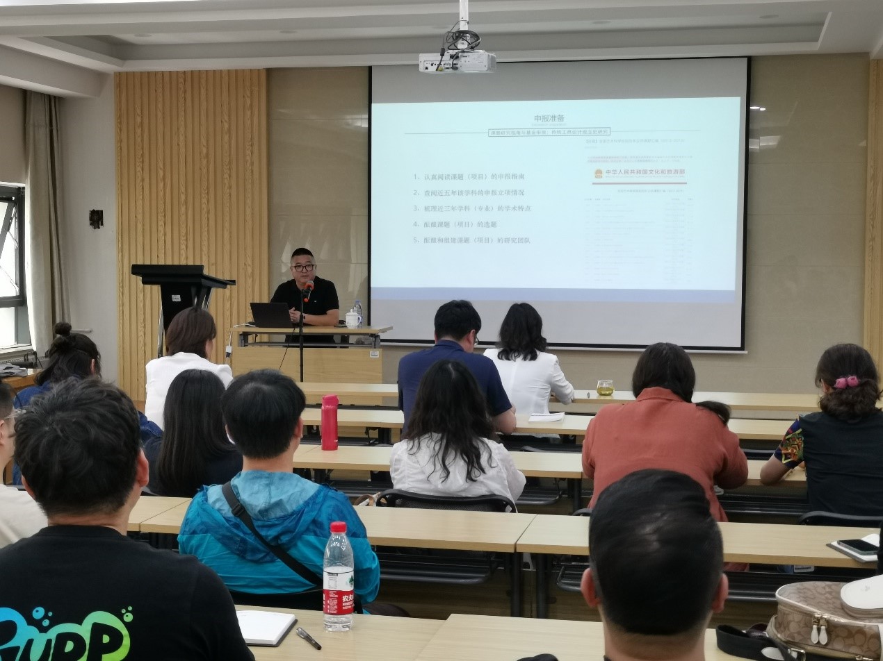朱宏轩教授结合自己的申报经验,详细讲解了国家社科基金申报的具体要求,从高水平艺术类项目研究的选题、研究路径、目的意义、内容方法等方面深入剖析了申报中应该注意的问题。同时以各类基金申报为切入点,从设计学的科研选题出发,从内部视角和外部视角阐述了创新设计的本质特征,深入浅出的讲述了设计学研究的范式,就新范式更广泛的取样及非典型的意义进行了重点阐述。朱教授的讲座向大家展现了设计学研究的深度和广度,开阔了学术研究的视野。
