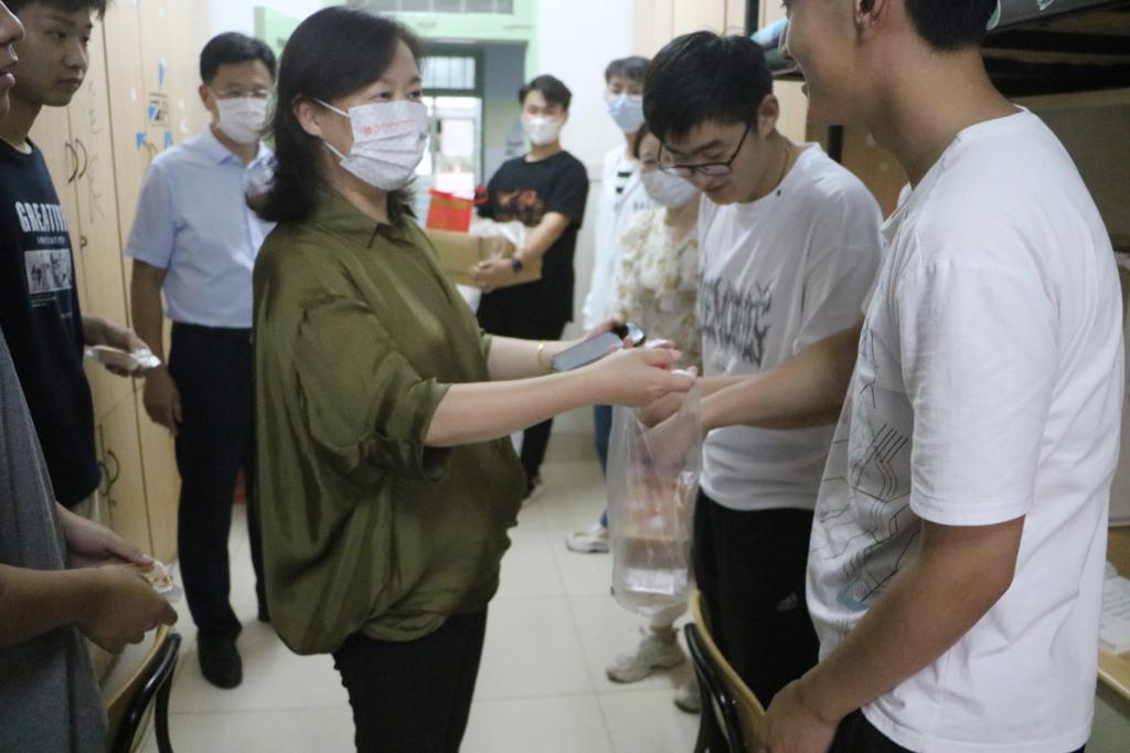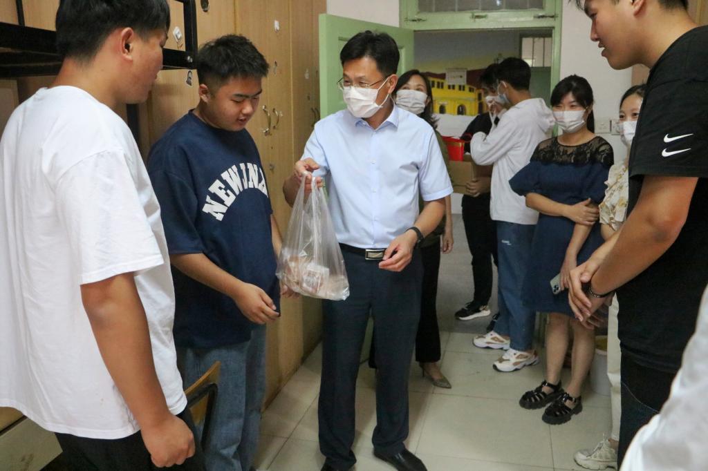 9月9日下午,公司党委书记王凯、经理杨梅、党委副书记兼副经理卫雪以及团委老师等到新生宿舍进行慰问,为同学们分发中秋月饼并与同学们亲切交流,老师们关切地询问同学们入校后的适应情况,嘱咐同学们在疫情防控的特殊时期,要注意做好个人防护,让新生同学感受到学院的温暖,体会家的温馨。新生们纷纷表示,会尽快调整状态,融入太阳成集团tyc234cc这个大家庭,以积极进取的心态迎接老员工活,不负学院、家长、老师寄予的厚望。