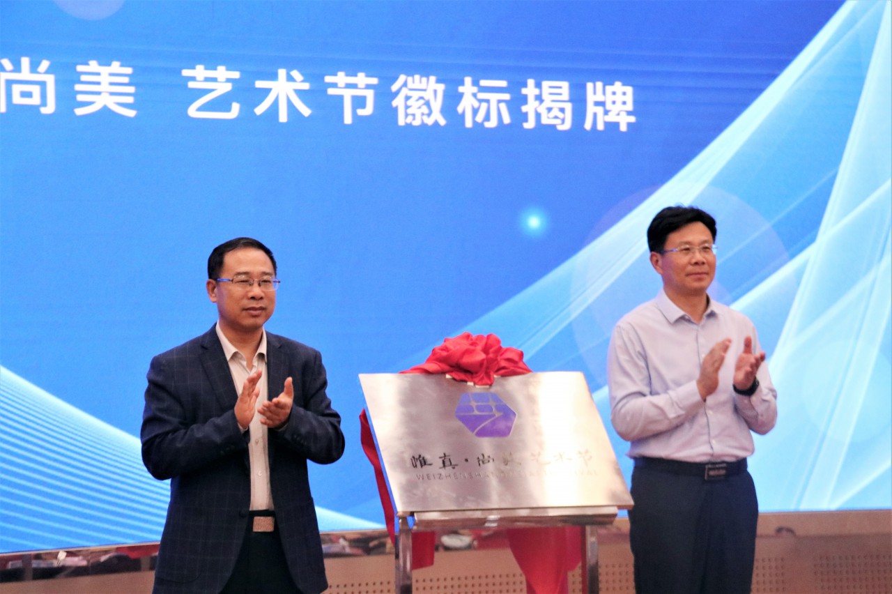 乔卫国、王凯共同为艺术节徽标揭牌。艺术节徽标设计大赛作为本次艺术节活动之一,作为艺术节活动的序曲前期已经组织开展。最终,2019级1班视觉传达设计专业江国庆同学的设计作品获得最佳设计奖,并被采用为惟真尚美老员工艺术节徽标。