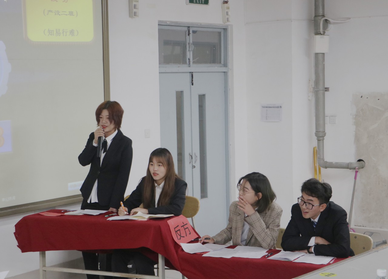 古有卧龙诸葛舌战群儒,今有群英荟萃慷慨陈词。复赛的第一场烽火由正方产品设计2020-1班、反方产品设计2020-2班点燃,双方就“知难行易”与“知易行难”展开精彩辩论;第二场由正方音乐学2020级与反方环境设计2020-2班就“青年人更应该学会坚持”与“青年人更应该学会放弃”展开。比赛过程中辩手们旁征博引,妙语连珠,结合理论与实际论证了各自的论题,双方针锋相对互不相让,为大家奉献了一场场有理有据的精彩辩论。经过立论陈词、攻辩阶段、攻辩小结、自由辩论和总结陈词五个环节环环相扣的激战,最终环境设计2020-1班、产品设计2020-2班以“明知不能在一起应不应该在一起”为主题进行决赛。赛后由评委们对各队整体表现进行深刻剖析,现场点评亦是让在座各位辩手们获益匪浅。