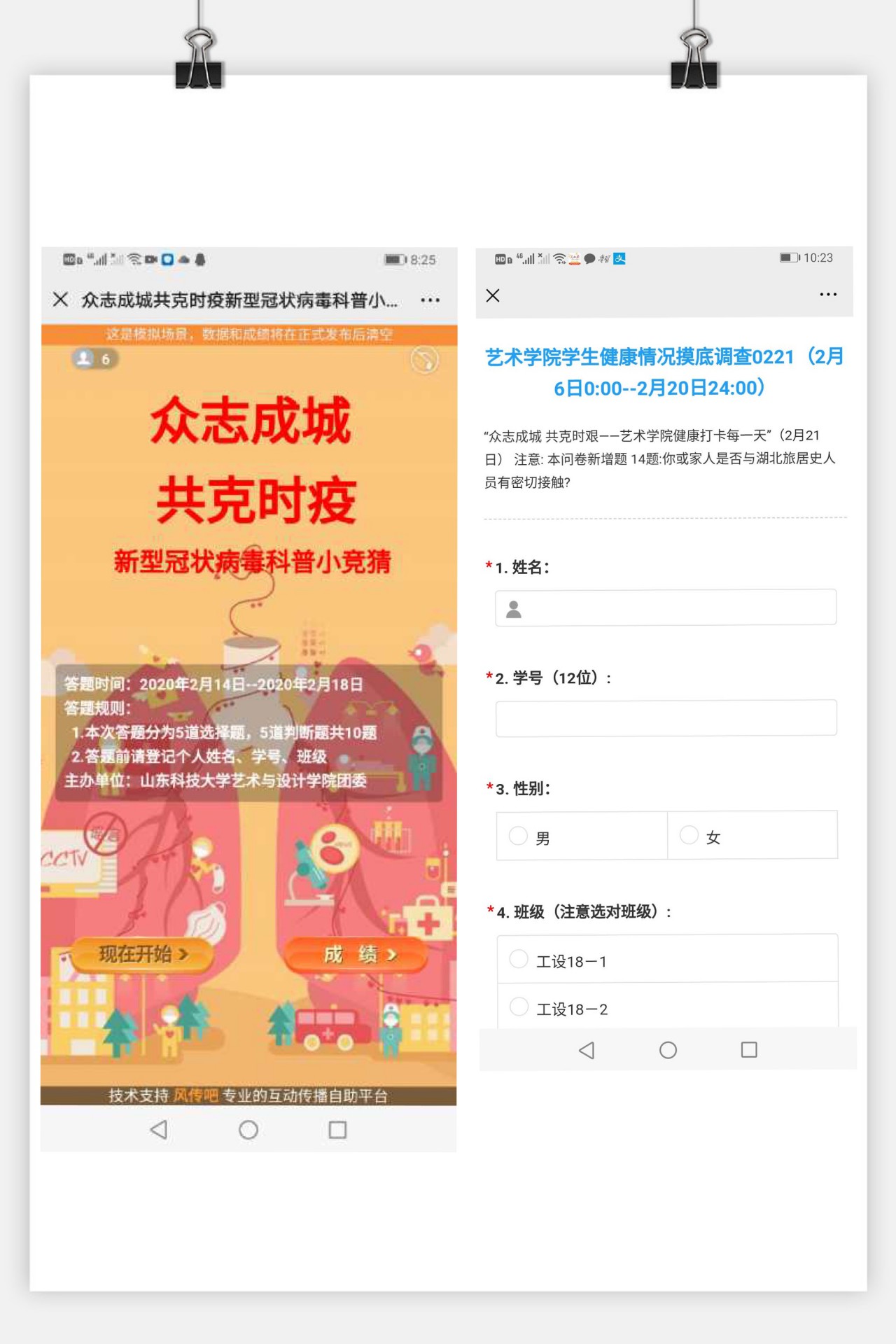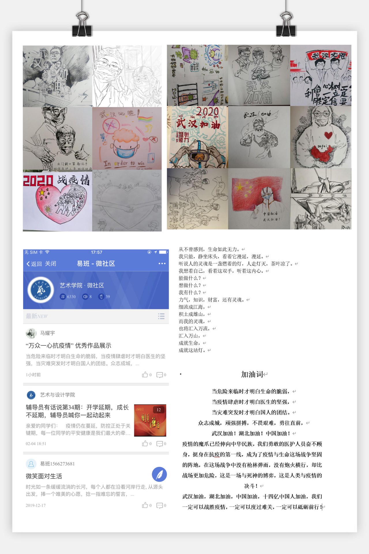 同学们用实际行动响应号召,他们居家隔离、主动学习的同时,还捐款捐物、参加社区(村委)的志愿服务活动,涌现出了一批表现积极的员工骨干。其中,工业设计2018-1张天宇同学,自2020年1月27日参与泰安市岱岳区夏张镇夏北村疫情防控工作,其团队志愿事迹被学习强国山东学习平台和《齐鲁晚报》报道;产品设计2016-1班安伟华、工业设计2018-1班潘忠岩等同学、视觉传达设计2008-1班王悦同学分别在河北石家庄、山东蓬莱、烟台莱山区等家乡所在地参与的疫情防控志愿服务受到当地认可与好评。