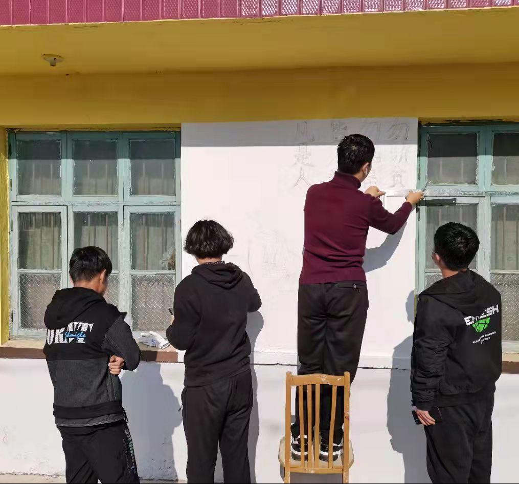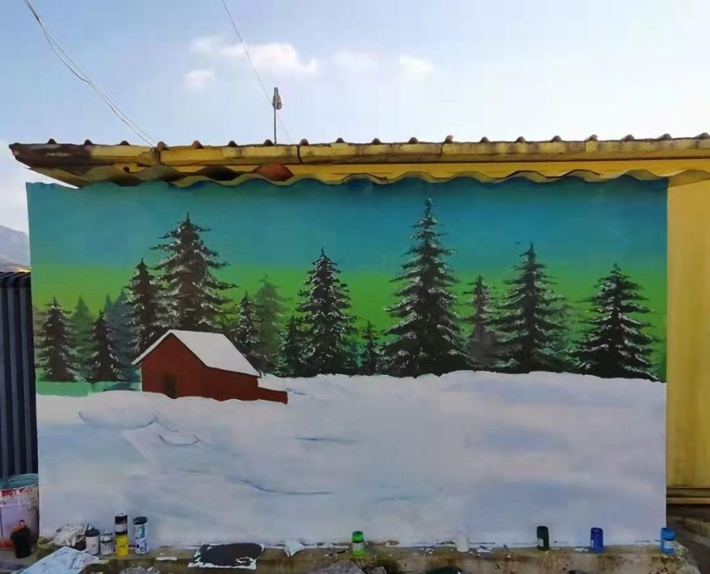 本次墙绘以“知时节之美,扬传统之帆”为主题,以墨家“兼爱”思想为主体,倡导新时代和谐友爱的人际关系,具化到社区邻里和睦。冬至作为二十四节气之一,其中智慧与我国传统农耕文明密不可分。为感知时节之美,志愿者取“大雪盖青松”这一传统冬日印象,描绘出“冬日雪景图”。绘画时运用浓墨重彩的笔触,使画面生动形象、富有张力,无形中发挥社区墙绘的教化功能,以大众化的艺术表达形式,弘扬优秀传统文化。在志愿者的共同努力下,此次活动圆满成功,为凛凛寒冬带来一丝暖意!